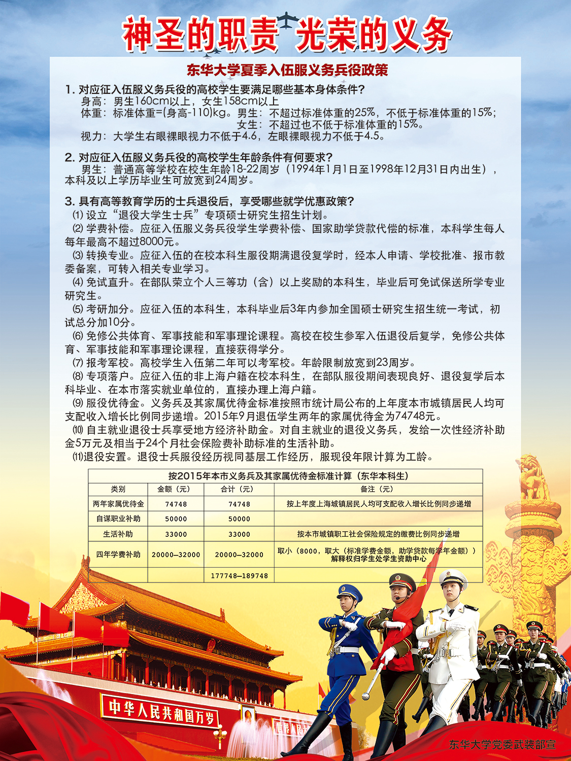 征兵报名时间:延安路校区:2016年3月17日-5月31日(周三、周五)