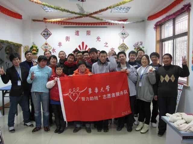 我校机械学院智力助残志愿者服务队成立于1995年,作为上海市智力助残成立最早的志愿者服务基地之一,已经默默坚守了20年,爱心的接力棒在每一届东华莘莘学子的手中传递。20年来,服务队每年在册志愿者均在200人以上,足迹遍布松江各个街道和社区,每年累计服务12480工时,每年受益对象覆盖1100多人。“智力助残”服务队坚持面向松江区阳光之家的智残人士开展丰富并有教育意义的活动。通过义务家教活动,被辅导的残疾人子女学习成绩都有了不同程度的提高。在阳光之家奉献爱心活动中,服务队通过开展形式多样的志愿者服务活动,帮助智障人士提高生活自理能力,使他们找到生活的信心,以乐观的态度坚强地面对生活。