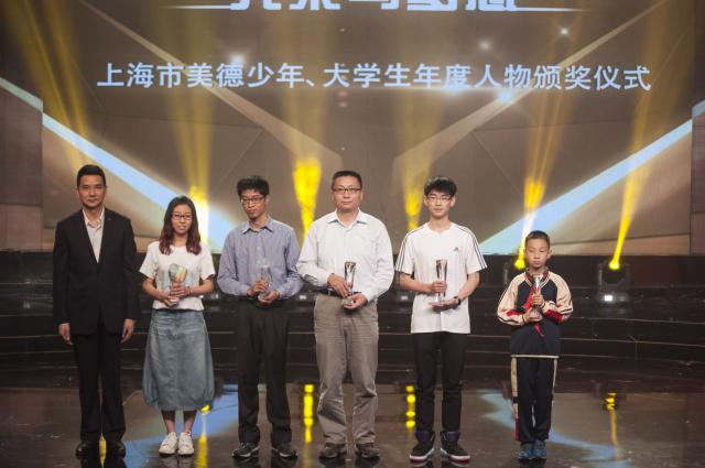 上海市美德少年、大学生年度人物颁奖现场(左二为我校智力助残志愿者服务队获奖代表)