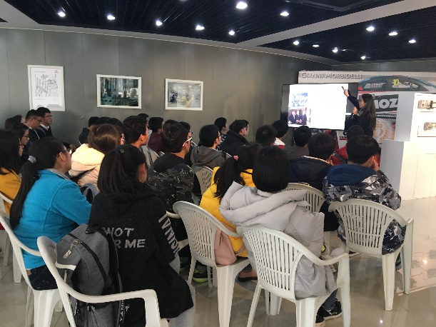 在嘉定区康茂胜自动控制有限公司上海总部,市场部负责人尤永蕙就企业文化、主攻方向与工厂操作等内容向同学们作了详细介绍。作为一家意大利企业、气动执行器品牌,康茂胜在气缸制造上独具特色,而这也与同学们日后的专业方向有着密不可分的联系。在观看工厂机器操作视频及企业介绍,同学们神情专注,边听边看边思考。