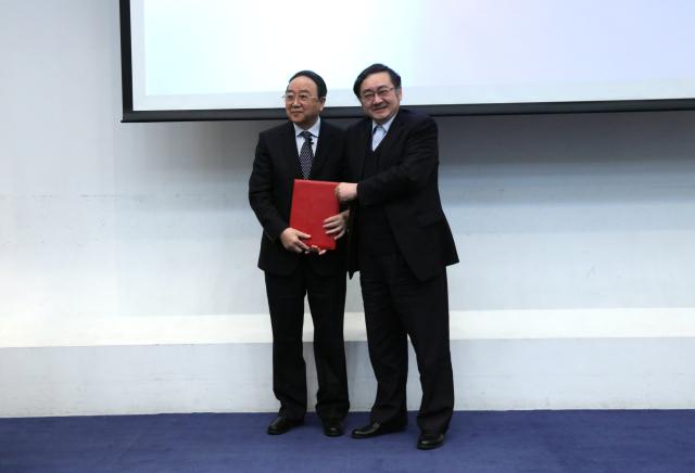 (蒋昌俊校长为李伯虎院士颁发聘书)