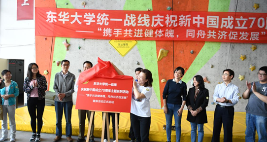 5月9日,伴随着“携手共进健体魄,同舟共济促发展”健身活动的举行,我校统一战线庆祝新中国成立70周年主题系列活动(以下简称为“系列活动”)在松江校区启动,党委副书记崔运花出席并为系列活动揭牌,党委统战部、体育部及各民主党派统战团体负责人及成员、统战干部等80余人参加活动。