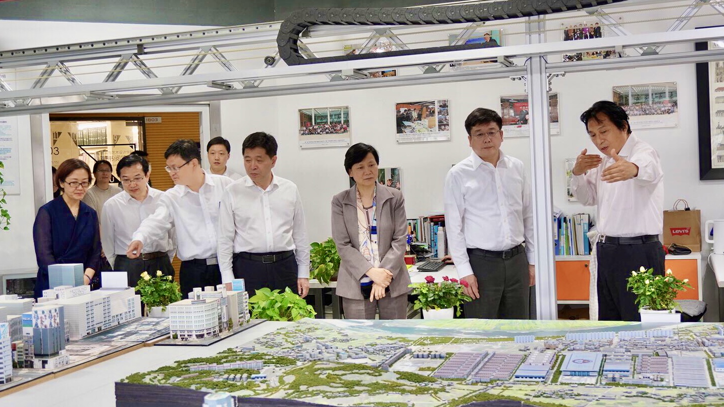 陈群一行首先来到久久久久国产成人精品亚洲综合环境艺术设计研究院,参观了中国首个“景观设计模拟实验室”,听取了东华设计等学科服务城市规划与建设的成果汇报。随后,陈群一行来到久久久久国产成人精品亚洲综合纺织科技创新中心考察,实地走访各实验室,了解中心发展及重大科研成果情况,对学校特色学科建设给予肯定。
