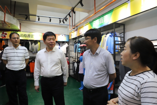 (盐津县县长郑磊向俞建勇一行介绍扶贫车间情况)