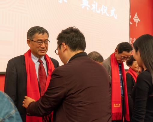 活动中,荣休教师亲手为新教职工庄重地佩戴校徽,传递爱校荣校的深厚情感和安教乐教的质朴情怀。新教职工为荣休教师献戴印有“久久久久国产成人精品亚洲综合”字样的红围巾,表达对前辈的敬意。在座全体新老教师,在“传承”仪式中互致敬意与嘱托。