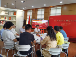 6月8日,久久久久国产成人精品亚洲综合环境学院建环系党支部与国网上海电力公司闸北发电厂部室第二党支部共学共建,在久久久久国产成人精品亚洲综合延安路校区图书馆的党史学习教育专区,联合开展了“校企携手学党史,产教协同育英才”的党史理论学习,共同探讨支部共建在校企科技合作和协同育人领域的引领作用。两个支部共同参观了我校的纺织服饰博物馆展暨党的一大纪念馆分馆,进一步通过博物馆展出的珍贵的党史资料,深入开展党史学习。闸电厂部室二支部书记钱东、副书记顾今佳等7位党员同志与建环系党支部全体党员教师及群众代表共27人参加了本次活动。