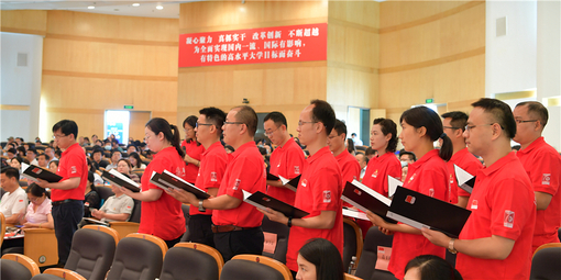 会议最后,刘承功带领全场党员师生共同重温入党誓词,号召各级党组织和广大师生党员回望初心使命、永葆政治本色、提振奋斗精神,共同谱写“奋进东华”新篇章!