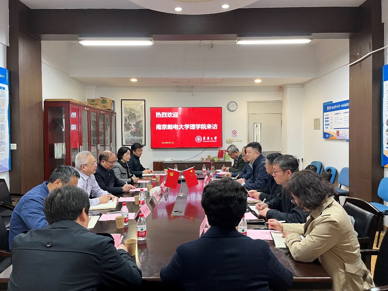 4月7日,南京邮电大学副校长王友国、理学院党委书记尹志丽、院长唐加山、信息与计算科学系党支部书记戴建新、信息与计算科学系副主任邵长国一行来我校理学院调研交流。我校副校长陈革出席座谈会,理学院党委副书记(主持工作)谢峰、副院长胡良剑、学院党委副书记王乔松,学院教授寇春海、郭颖、李美丽,副教授尤苏蓉共同参加。会议由胡良剑主持。